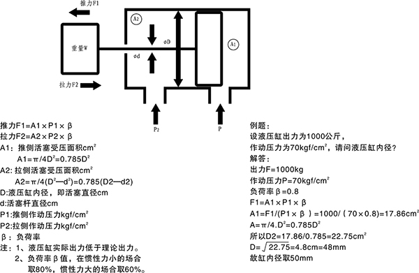 由力的計(jì)算公式可知: F = PS(P:壓強(qiáng); S:受壓面積—由油缸的缸徑、桿徑?jīng)Q定)